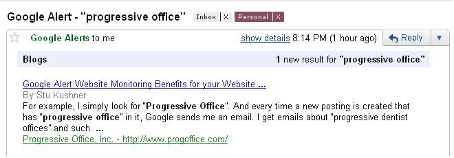 This is the Google Alert email that I received about 7 hours after posting this article.